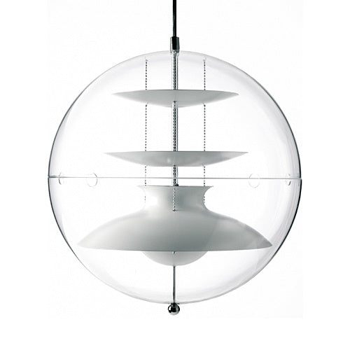 1977年、圧倒的な存在感を持つ「VP グローブ」のバリエーションとしてデザイン。当時はルイスポールセン社によって製造されていました。透明の球体アクリルの内側には3枚のリフレクターがボールチェーンによって吊られています。点灯していないときにも独特の存在感を放ちます。
