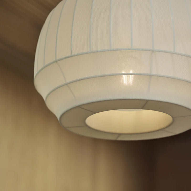 シェードにはポリエステル素材を使用し、紙のような温かみと現代的な耐久性を両立。和紙や布のような柔らかさを持ちながら、洗練された存在感を放ちます。点灯時・消灯時どちらも美しく、ダイニングやリビングを上質に演出します。
