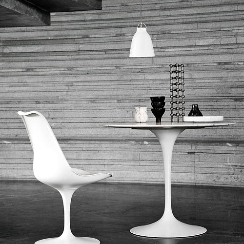 イタリアバロック期の巨匠の名前を持つ「Caravaggio(カラヴァッジオ)」は、2005年の発表以来、瞬く間にデザインアイコンになりました。デザイナー Cecilie Manz(セシリエ・マンツ)は、シェードはやわらかく中世的に、クロームメッキのホルダー部分は対照的に、インダストリアルなデザインを施しました。マットモデルは更に美しいデザインを際立たせます。