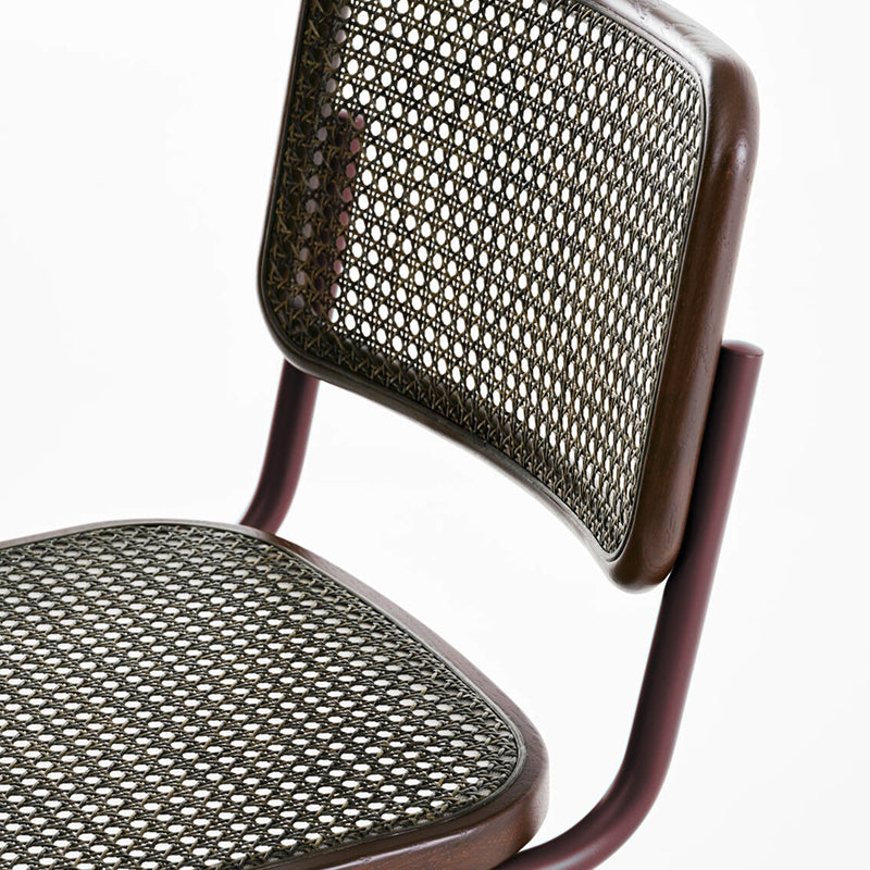 「Edition Herkner」のS32Vは、クラシックなカンチレバーチェアの現代的アレンジです。デザイナーSebastian Herknerが手掛け、座面には深みのあるダークメランジェカラーのケーン(籐編み)を用いた仕様です。フレームと木部には多彩なカラー展開が採用され、濃淡や色合いの絶妙なニュアンスを楽しめる仕上げとなっています。フレームは高級感のあるマット粉体塗装仕上げのスチールパイプで仕上げられており、背もたれと座面フレームはオーク材のステイン塗装仕上げとなっております。伝統と革新を兼ね備えたデザインで、現代のインテリアに自然なアクセントをもたらし、長く愛用できる逸品です。