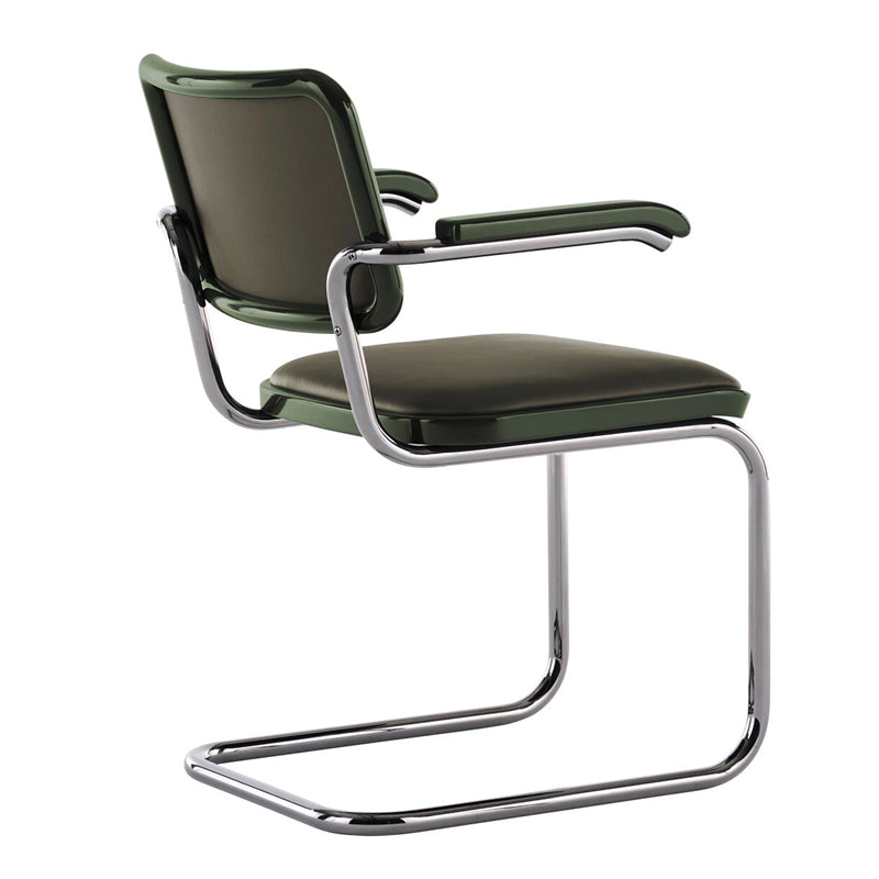 SERIOUS ラインでは、チタンのような外観の光沢のあるフレームを使用して名作家具に新たな魅力を与えています。S 64の座面と背もたれには4色の革張り、もしくはダークカラーのケインワークが選べるようになっており、木製フレームとアームレストには、同色の高光沢ラッカー仕上げが施されています。この仕上げはスタインウェイのグランドピアノの仕上げにインスピレーションを得ており、重厚な存在感が目を引きます。