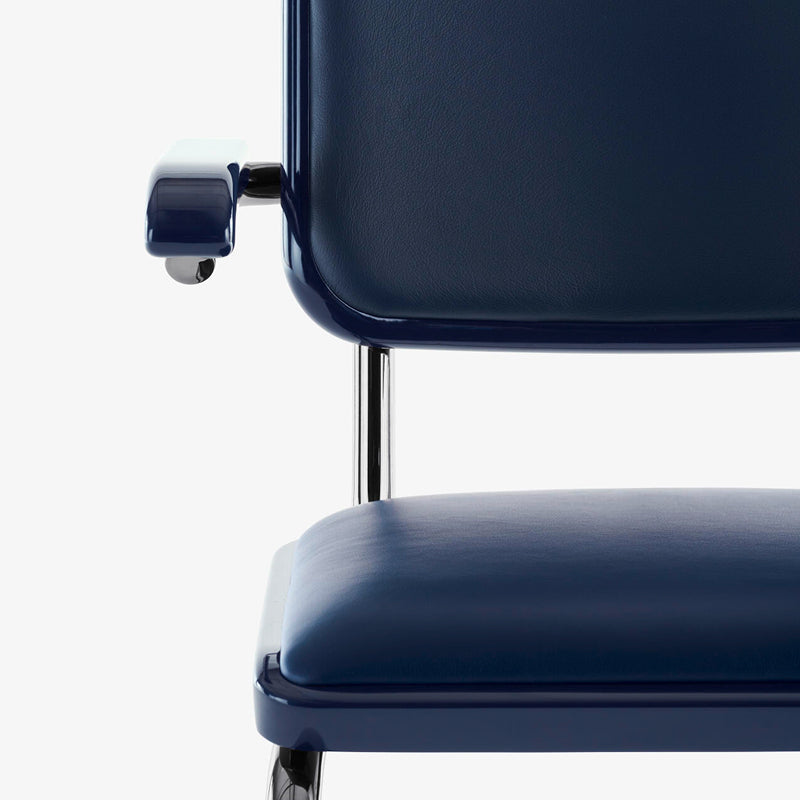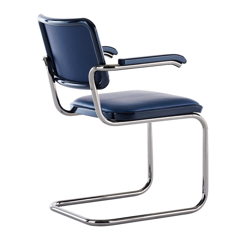 SERIOUS ラインでは、チタンのような外観の光沢のあるフレームを使用して名作家具に新たな魅力を与えています。S 64の座面と背もたれには4色の革張り、もしくはダークカラーのケインワークが選べるようになっており、木製フレームとアームレストには、同色の高光沢ラッカー仕上げが施されています。この仕上げはスタインウェイのグランドピアノの仕上げにインスピレーションを得ており、重厚な存在感が目を引きます。