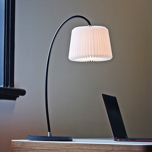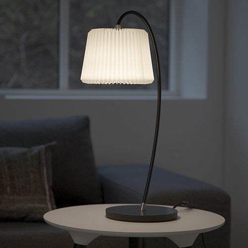 デンマークを代表する照明ブランド、レ・クリントのスタンド照明、「スノードロップ」。その名の通り待雪草のシルエットに着想した曲線美と、プリーツシェードを透したやわらかな光が特徴のスタンド照明です。最大で40度ほど可動するステムは、まるでお辞儀するように人の営みに合わせて光を届けてくれます。室内に光の花が咲いているかのような佇まいは幻想的で、奥ゆかしい存在感から幅広いインテリアに調和するため、長年の人気モデルとなっています。