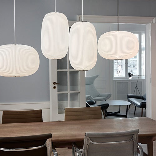 20世紀初め、デンマークの著名な建築家であるP.V.イエンセンクリントは、アルコールランプの光を和らげるため、紙を規則的に折り上げて作る、手づくりのランプシェードを生み出しました。そのシェードは、美しいデザインだけではなく、機能的にも優れたあかりの名品として評判となり、1943年にレ・クリント社が創立されました。