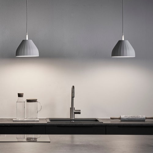 20世紀初め、デンマークの著名な建築家であるP.V.イエンセンクリントは、アルコールランプの光を和らげるため、紙を規則的に折り上げて作る、手づくりのランプシェードを生み出しました。そのシェードは、美しいデザインだけではなく、機能的にも優れたあかりの名品として評判となり、1943年にレ・クリント社が創立されました。