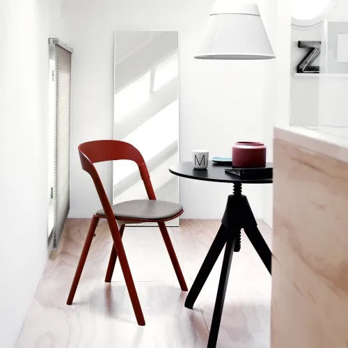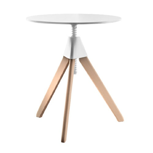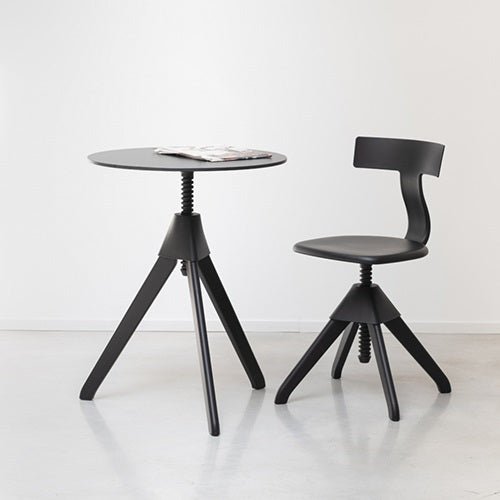 ネコとネズミのコミカルな物語を思わせる、The Wild Bunchシリーズのテーブル。座面をまわすことによって昇降する古典的な作業用スツールの構造がデザインの要になっており、コレクションのスツールやチェアと組み合わせれば柔軟にサイズが調整できるカフェ・コーナーやダイニングとして利用できます。高さの調整が可能なためキッズ用の学習としても人気が高いモデルです。