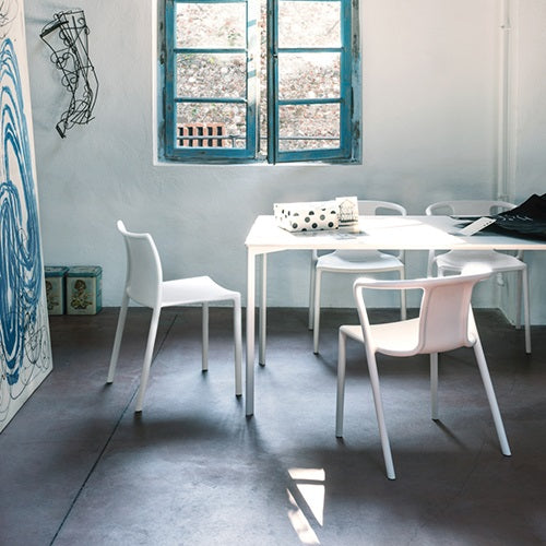 世界的プロダクトデザイナー、ジャスパー・モリソンが手がけた世界で初めてエアモールド成型で作られたチェア、エアチェア。中空モールド(鋳物)によるシンプルでムダのない軽快なフォルムは、国際的な評判を呼び家具業界に革新を起こしました。豊かなカラーリングのポリプロピレン製ボディは屋外でも使用でき、幅広いシーンに対応します。10脚までのスタッキングも可能です。