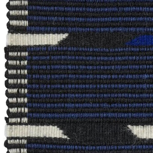 VK-4ラグは、1980-90年代にデンマークを代表する名工、ヴィブケ・クリント(1927-2019)が手がけた手織りラグの一つ。ワープレップ織りと平織りの技術を駆使したディティールは、最も経験豊富な織工だけが行うことができる挑戦的な組み合わせです。