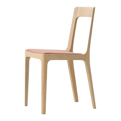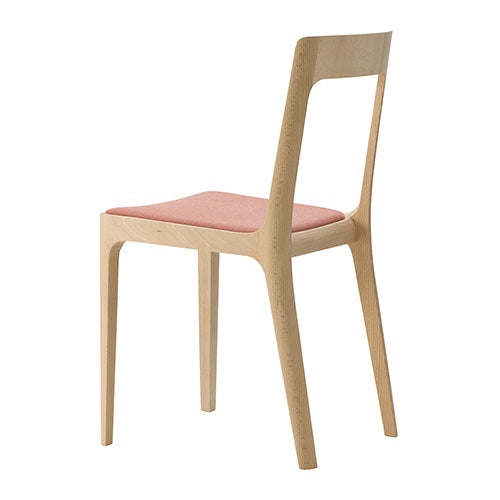 木の質感を残しながらも、脚、背、笠木などが溶け込むように繋がり、手で触れた時にも滑らか。また、座は薄く一体感のある仕上がりですが、工夫を重ねたクッション構造により、底付き感もなく快適です。