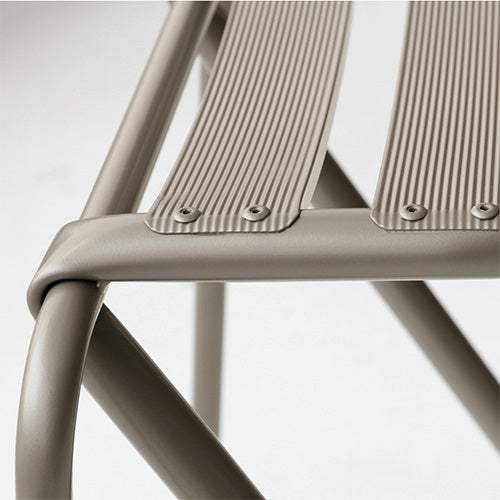 頑丈に組んだフレームのスチール素材は強度に優れ、座面はアルミニウムを湾曲させることで座り心地のよさを体現。