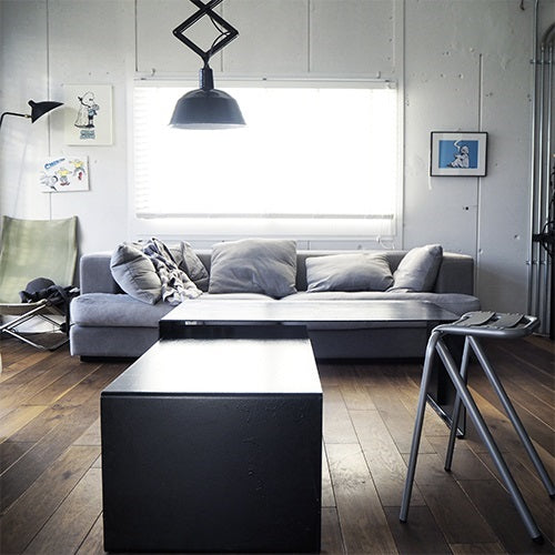 フレームに使用しているスチール素材は、中空パイプ形状にしていることで軽量かつ強度が高く、丈夫なインテリアを作るうえでメリットの大きい素材です。