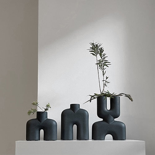コブラシリーズは実際に手のスケッチを基にして、デザインされたフラワーベース。建築的なデザインとは対照的に、人間のような柔らかく曲線のあるシルエットを表現しています。そのまま飾ってもオブジェクトとして存在感があるため、自分好みにコーディネートを楽しめます。