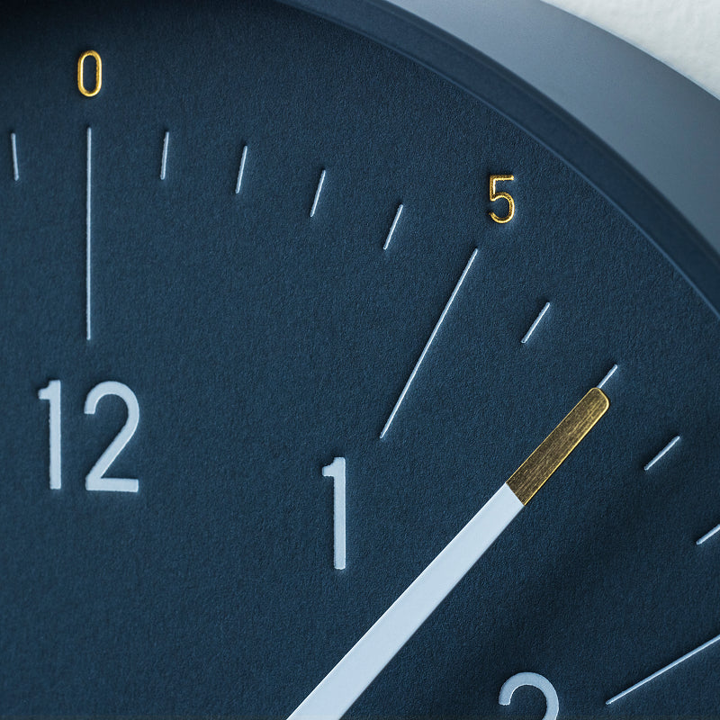 「essent」は、壁掛け時計の役割と素材に正面から向き合うことで誕生しました。一般的な時計が1〜12の時間表示のみで構成されるのに対し、essentは時を示す数字と分・秒を示す数字をそれぞれ記し、さらに2種類の色彩を対応させることで、直感的で分かりやすい視認性を実現しています。加えて、クリーンで見やすい独自書体を開発し、子どもから大人まで幅広く使えるデザインとしました。素材面では、文字盤の印刷に着目し、活版印刷から着想を得た凸版的表現を採用。厚紙に2種の箔押しと空押しを重ねることで、深みのある質感を実現しています。機能と素材の本質に立ち返ったこの時計は、高い実用性とインテリア性を兼ね備え、どんな空間にも調和します。2025年にはiFデザインアワード(ドイツ)を受賞しました。