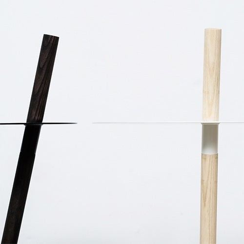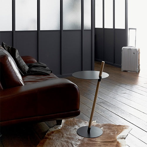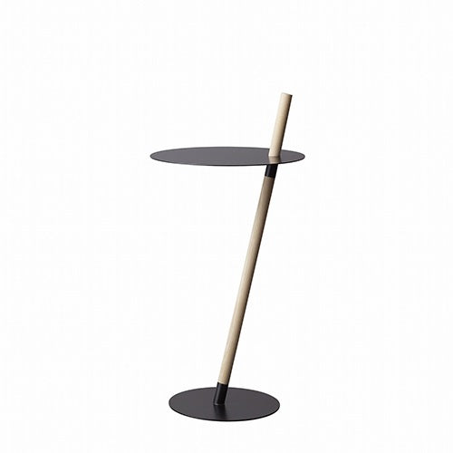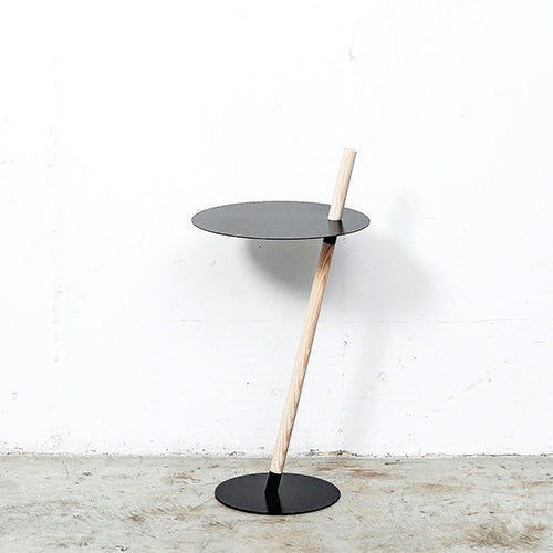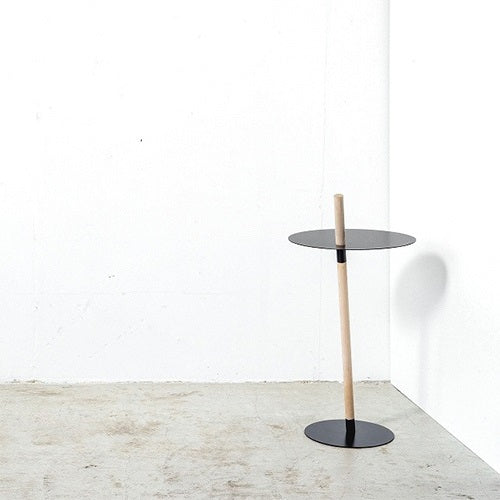 1本の丸い支柱だけで天板部分とベースを繋いだデザインは、どこから見ても凹凸のない端正でユニークなサイドテーブルです。