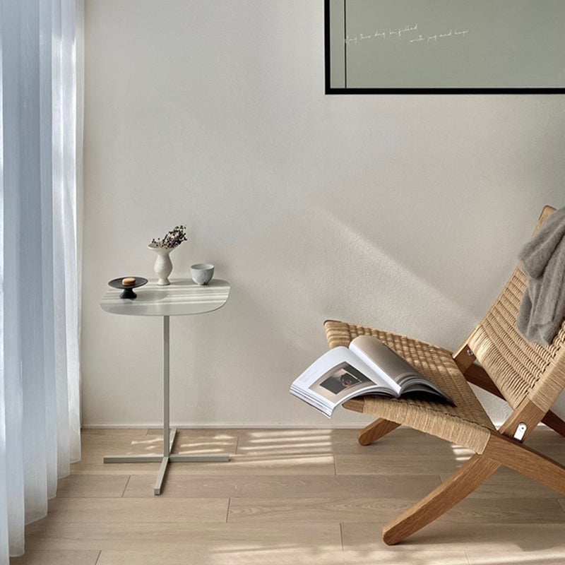 SOLID STEEL TABLE(ソリッド スチール テーブル)は、十字にクロスした重厚感のあるベースから前後の角のアール率が微妙に異なる緩急のついた天板が特徴的なサイドテーブル。