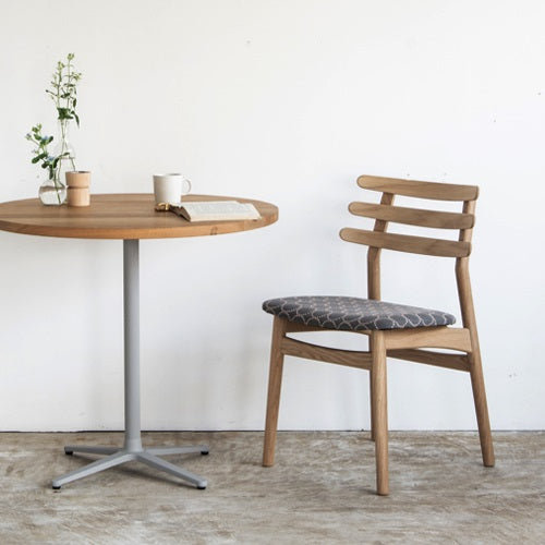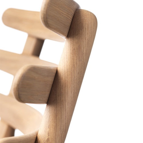 1951年に誕生したJ48は、FDBモブラーの2代目企画デザイン担当責任者を務めたポール・M・ヴォルタによって手掛けられました。3本の丸みを帯びた笠木から構成される背は非常に独創的である一方、美しさだけでなく安定した座り心地も与えてくれます。 ヴォルタがFDBモブラー独立後に10年の時を経て生み出す彼の代表作「コロナチェア」はこの流れを汲んでおり、J48はその原点ともなった1脚と言えます。ファブリックは世界的にも評価の高いmina perhonen(ミナ ペルホネン)の生地“dop tambourine”を採用。両面モールスキンのダブルフェイスによる生地は、使い込むうちに表面の糸が擦り減ることで、裏面の色が現れてくる性質を持ちます。