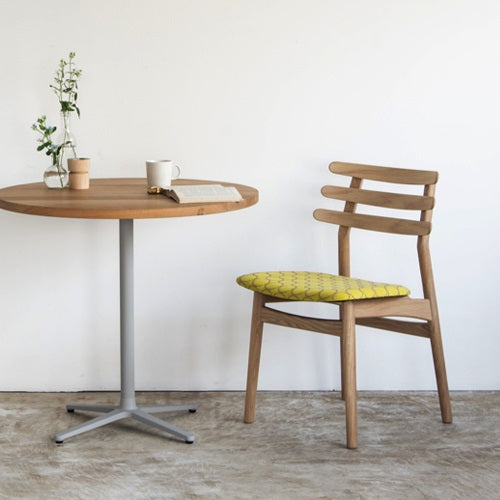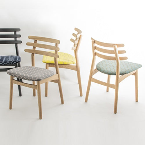 1951年に誕生したJ48は、FDBモブラーの2代目企画デザイン担当責任者を務めたポール・M・ヴォルタによって手掛けられました。3本の丸みを帯びた笠木から構成される背は非常に独創的である一方、美しさだけでなく安定した座り心地も与えてくれます。 ヴォルタがFDBモブラー独立後に10年の時を経て生み出す彼の代表作「コロナチェア」はこの流れを汲んでおり、J48はその原点ともなった1脚と言えます。ファブリックは世界的にも評価の高いmina perhonen(ミナ ペルホネン)の生地“dop tambourine”を採用。両面モールスキンのダブルフェイスによる生地は、使い込むうちに表面の糸が擦り減ることで、裏面の色が現れてくる性質を持ちます。