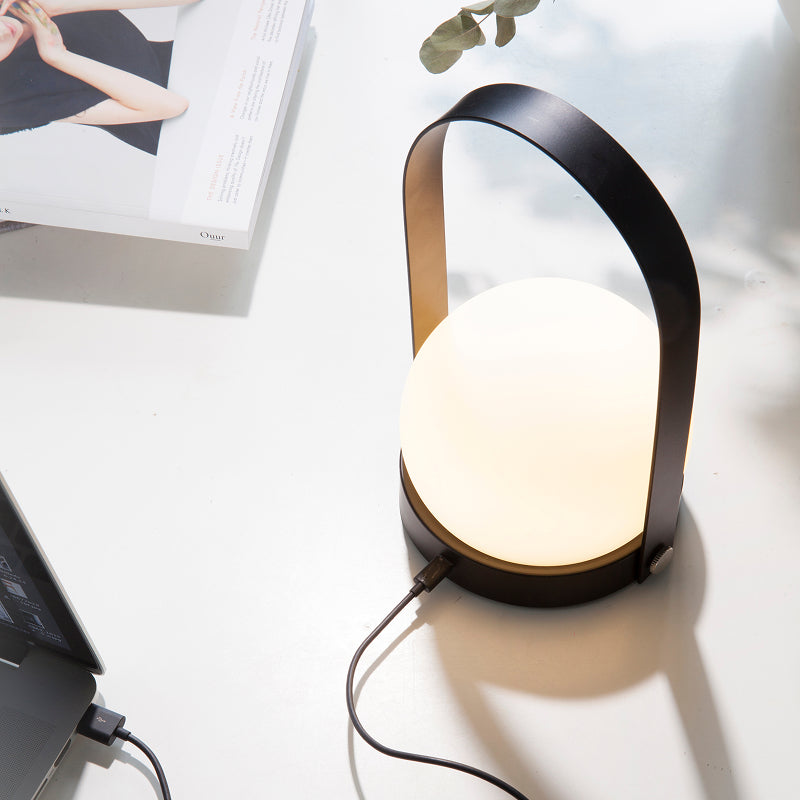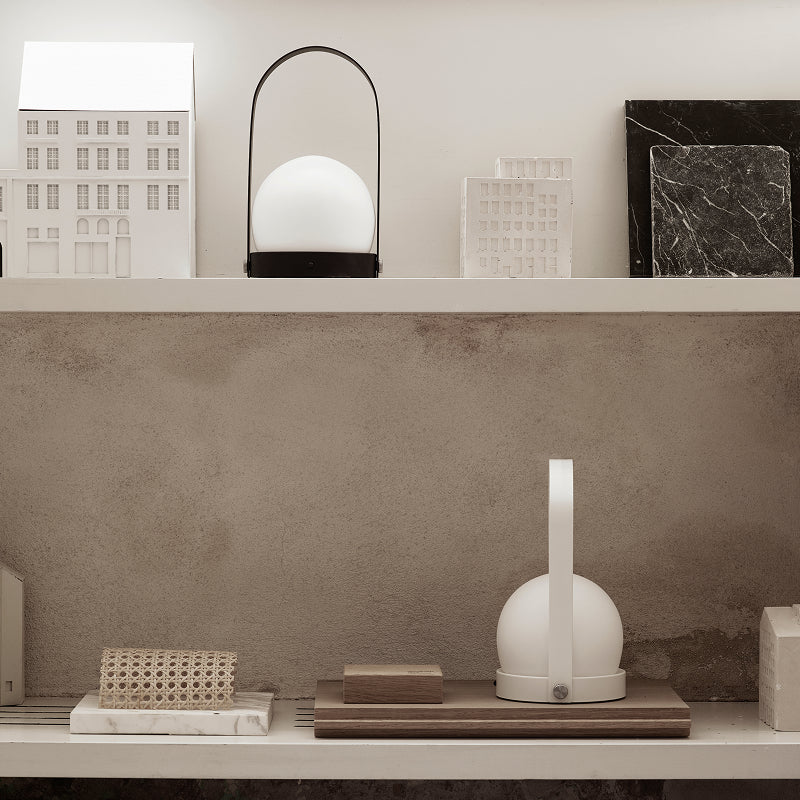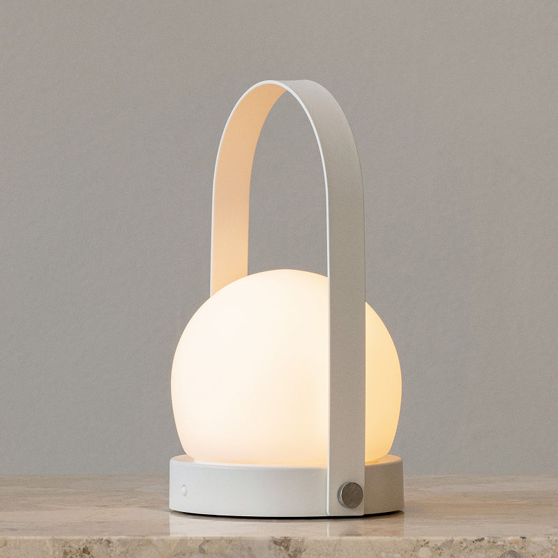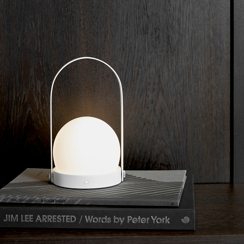 軽くて持ち運べるこのLEDランプは、ヒュッゲの精神を現代的に継承している。事務所のデスク、ダイニングテーブルでキャンドル代わりにといった屋内使用はもちろん、コードレス使用できるので、自転車かごに入れて、ピクニック、フェス、月明かりのビーチといったアウトドアに持ち出すにも手頃なサイズ。ベッドサイドにあれば、突然の深夜の災害時にも心強い。ハンドルを取り外す、または位置を自在に動かして灯すこともできる。
