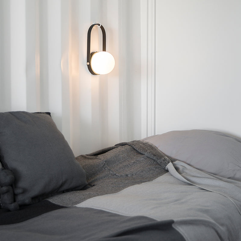 コロンとした丸い乳白色ガラスのライト。ほんのりやわらかな灯りに癒される