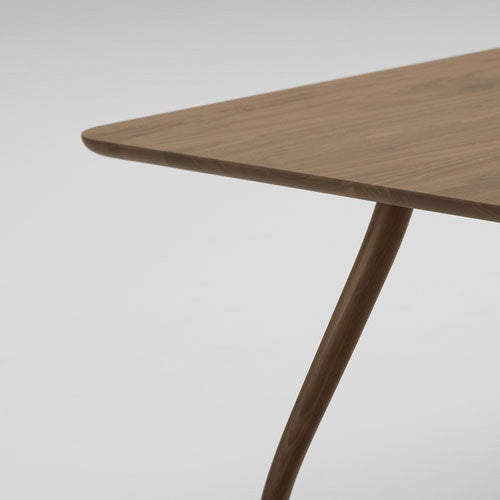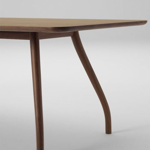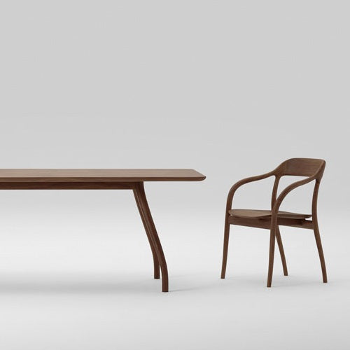 一見して目につくのは、プロダクト全体に通底するオーガニックなカーブ。 背もたれから4本の脚へと枝分かれする美しい曲線は、空間に豊かな存在感をもたらすのと同時に、人の身体を絶妙に包み込むよう設計されています。深澤氏は、無垢の木材の質感や、切削されることで初めて醸し出される雰囲気をはじめとした素材の持っている存在感を彫り出すプロセスの中でこの形が生まれたと語っています。