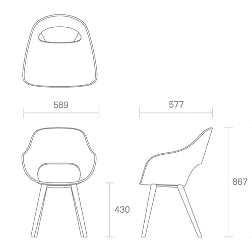 - Roundish アームチェア ウォルナット材ブラウン SH430mm