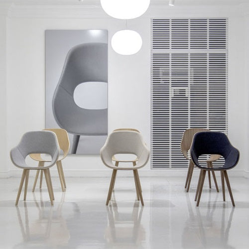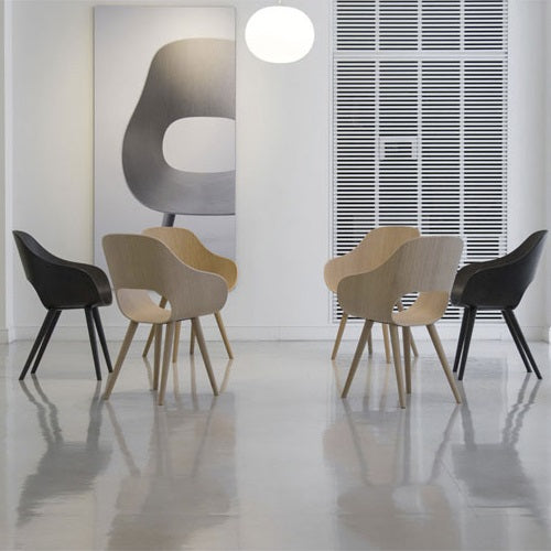 まだマルニ木工が世界的に知られる前から、マルニのチェアに触れ、座ってみようとする人は後を絶たなかったといいます。吸い寄せられるように触れたくなる椅子は、長年木工家具に携わってきた職人が生み出す工芸的な温かさと、デザイナーのボーダーレスなデザイン感覚の融合によって生まれたものでした。背からアームにかけての有機的な曲線が美しく、体重をやわらかに支えるチェアは、使う人の生活に溶け込み、100年後も定番として愛されるスタンダードとして世界に発信されています。