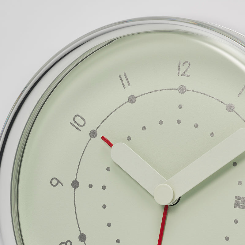 そして、暗所でも可読性を高めるために針の形状を工夫し、蓄光塗料で仕上げました。 清潔感のある蓄光色のライトグリーンと金属感のあるアルミニウムの文字盤の2色展開です。
