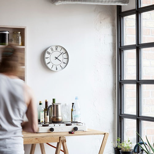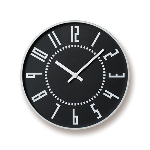 eki clockは五十嵐威暢が札幌駅の東西両コンコースのためデザインした駅時計を、オリジナルにそってウォールクロックにアレンジしたモデル。威暢氏は2003年、札幌駅南口外壁の「星の大時計」を手がけていますがコンコースの駅時計はその際同時に設計されたもの。この時計は両面表示(片面/白、片面/ 黒)で、下から見やすいように、半分から下の数字が全て上向きにデザインされているのが特徴です。オリジナルの駅時計としての機能性を継承したオリジナル数字による読み易く美しい文字盤と、アルミ砂型鋳物・切削加工で作製し文字盤とガラスの距離を最小限におさえた構造は、壁掛け時計として、究極のベーシックデザインを追求したプロダクトです。
