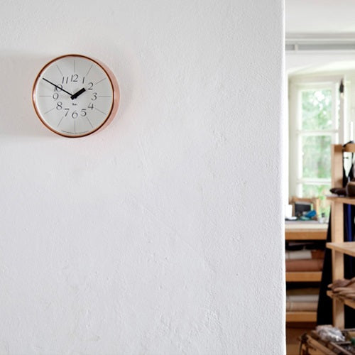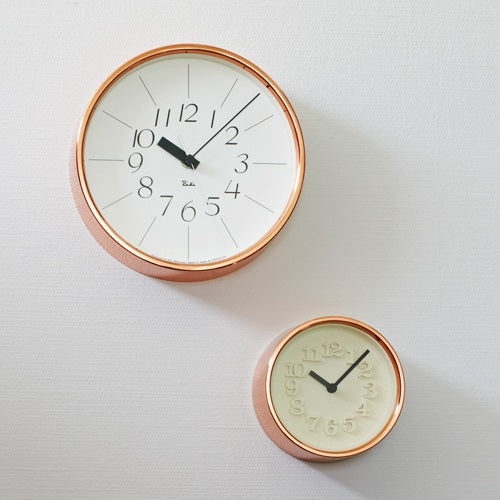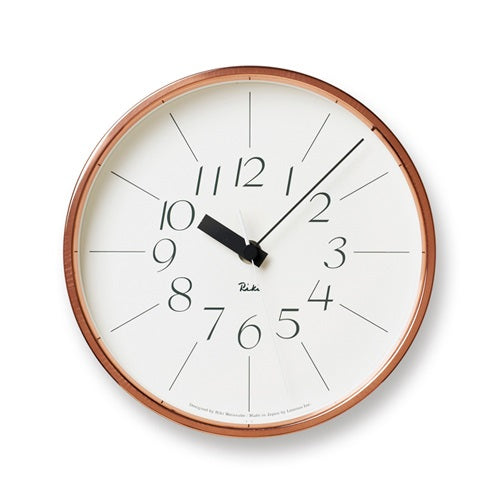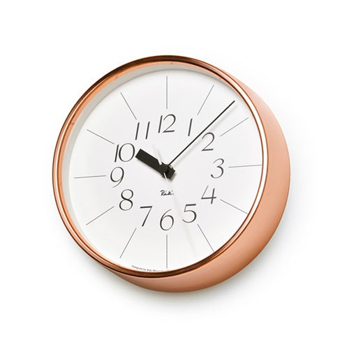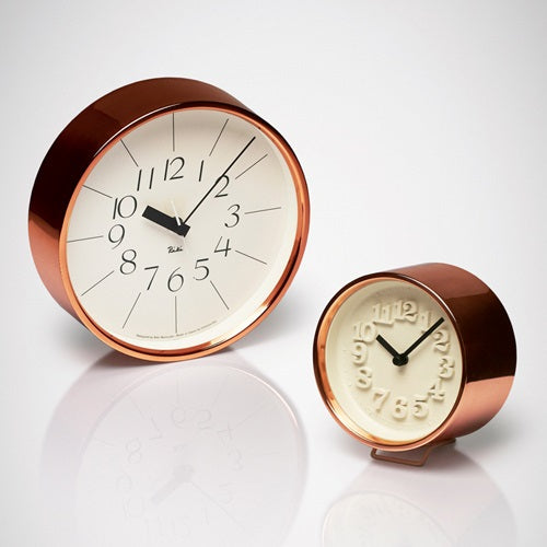 「銅の時計」は渡辺力氏の百歳を記念して、氏の最も愛するクロック2種を、氏の最も愛する金属、純銅の枠で製品化したものの一つ。京王プラザホテルメインバー、ブリアンのインテリアデザインに初めて剥き出しの銅板を持ち込んで以来、渡辺氏の銅素材への愛着は益々深まり、クロックデザインにおいても数々の試作でその可能性を探ってきました。思わず惹き込まれるような深みある美しさをご堪能ください。