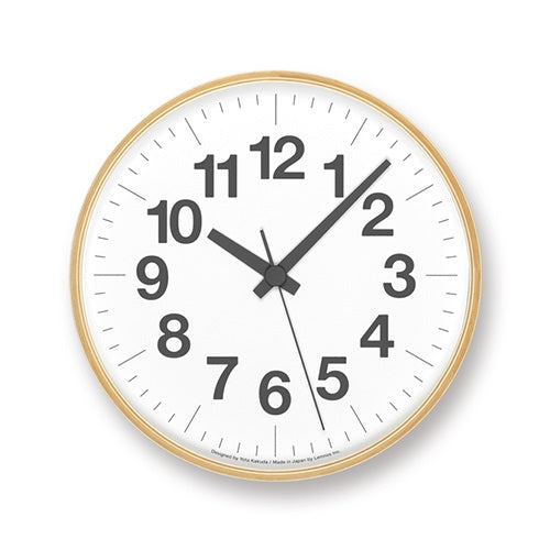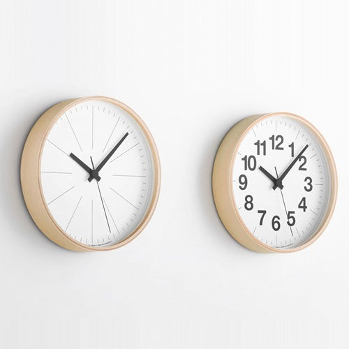 「ナンバーの時計 PLY」は、これ以上は困難であろうところまで数字を大きく太くすることにトライした掛時計に、以前からレムノスの複数の時計で使われてきた、タンバリンのフレームと同様の円環状のプライウッドを使用した時計です。壁を中心に空間に溶け込むデザインはそのままに、木の温かみが加わり、新たな魅力を演出しています。