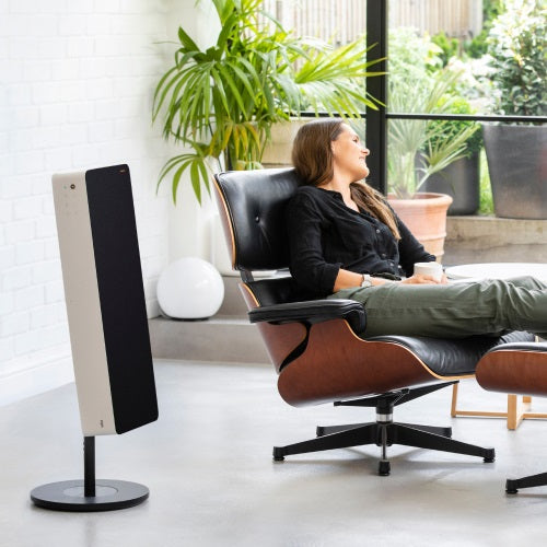 最先端のフラット・プロファイルBMR(バランスド・モード・ラジエーター)ドライブ・ユニットを搭載し、無指向性のパノラマ・サウンド・ステージを実現し、美しく豊かな音で室内を包み込みます。